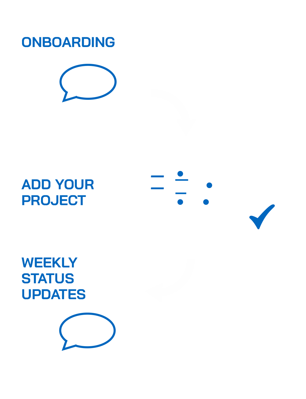 After your thirty minute onboarding call, we provide access to your own ClickUp board - a CRM platform where you can view and manage ongoing projects. To create a request, you merely click the + button on your board and add the task to our queue directly.